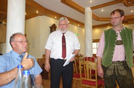 „Das Pflänzchen, das wir vor 15 Jahren auf Initiative des damaligen Kreisbauernobmanns und CSU-Landtagsabgeordneten Sepp Ranner gepflanzt haben, nimmt an Wuchs zu“, so RegRo-Vorsitzender Sebastian Friesinger, der weiter erläuterte, dass auf der von der VR-Bank geförderten „Frisch-vom-Hof-App“ derzeit 160 Direktvermarkter, Bauernmärkte und Hofcafes aus den Landkreisen Rosenheim und Traunstein gefunden werden können. Der für seine Gründungs-Initiative gelobte Sepp Ranner erinnerte seinerseits, dass die Bauernherbst-Idee seinerzeit vom Salzkammergut nach Rosenheim übernommen worden ist und er sagte weiter: „In Zeiten der Marktüberflutung ist es wichtig, Gutes und Regionales auf dem Tisch zu haben. Außerdem hat es großen Wert, wenn die Erzeuger mit den Verbrauchern vor Ort in Kontakt kommen und dass die Bauern an der regionalen Wertschöpfung beteiligt sind“. Ranner erinnerte auch daran, dass zu seiner Landtagszeit sein letzter Antrag (zusammen mit der SPD) der Jung-Imker-Förderung galt. Aus diesem bewilligtem Antrag und nach weiteren Maßnahmen hat sich bis heute ein umfassendes Bienen-Projekt ergeben, unter anderem bei der Bewusstseinsbildung von Grundstücksinhabern, die bei der Wiesenpflege daran denken sollen, dass Bienen ganzjährig Blumen und Pflanzen zum Bestäuben vorfinden sollten (Projekt der „Eh-da-Flächen“ als Anerkennungs-Wettbewerb). Wie Landrat Wolfgang Berthaler in seinem Grußwort zu den Bürgermeistern, Amtsträgern und RegRo-Mitgliedern ergänzend erklärte, werden im Landkreis die drei Imker-Dachverbände gezielt unterstützt. In den letzten beiden Jahren fiel die Honigernte recht mager aus, so dass in den Nimm´s-Regional-Regalen der heimischen EDEKA-Märkte das Honig-Angebot rückläufig war. Dennoch – so Geschäftsführer Wolfgang Cerweny von der Vermarktungs-GmbH- konnte dank neuer Verkaufsstellen ein Umsatzplus von zehn Prozent erreicht werden, weil die Nachfrage nach regionalen Produkten immer stärker werde. In den 16 Märkten mit „Nimm´s Regional-Regalen“ haben zuletzt besonders die Produkte von Cafe Dinzler und die (Früh-)Kartoffeln aus Aying zugenommen, allein von den Ayinger Kartoffeln werden allmonatlich rund 13,5 Tonnen über die Vermarktungs-Gmbh vermarktet.