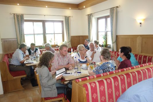 Nicht nur in heimatlichen Gefilden, auch auf der Grünen Woche in Berlin, der weltgrößten Ernährungsmesse, haben sich Direktvermarktungsanbieter aus den Landkreisen Rosenheim und Traunstein etabliert. Landrat Wolfgang Berthaler lobte in diesem Zusammenhang die Koordinierungs-Anstrengungen des Tourismusverbandes Chiemsee-Alpenland unter der Federführung ihrer Geschäftsführerin Christina Pfaffinger und er wies darauf hin, dass auch 2018 (vom 19. bis 28. Januar) ein Messeauftritt in der Bayernhalle sowie eine gemeinsame Besuchsfahrt der Bürgermeister geplant sind. Ausführlich informierte RegRo-Geschäftsführer sowie Bezirks- und Kreisrat Sebastian Friesinger über seine Aktivitäten. Diese reichten von Regionalgesprächen auf der Feichteckalm und auf dem Heuberg, über Kontakten zu bäuerlichen Anbietern in Südtirol bis zu Besuchen und Vorträgen in Schulen und auf dem Zentralen Landwirtschaftsfest. In seinem Ausblick nannte Friesinger den Rosenheimer Bauernherbst, der ab dem Herbstfest-Ende beginnt und bis Leonhardi dauert, als das wieder größte, gemeinsame Projekt mit vielen Veranstaltungen, die wiederum in einem eigenen Kalender erfasst werden. Viktoria und Sepp Heitzmann vom Cafe Wastelbauer stellten im Rahmen der Versammlung ihr 2013 eröffnetes Haus mit Urlaub auf dem Bauernhof vor. „Wir haben den Bau nicht bereut, Cafe und Vermietung laufen gut, aufgrund des Arbeitsanfalls haben wir von Milchwirtschaft auf Mutterkuh-Haltung umgestellt und bei der Vermarktung der Tiere arbeiten wir mit zwei heimischen Metzgern zusammen“, so Sepp Heitzmann, dessen Frau als Konditormeisterin noch mit Freude die reichliche Kuchen- und Tortenauswahl vorstellte. Zu den Genießern aus den Reihen der RegRo-Versammlung gehörten unter anderem auch Josef Steingraber vom BBV Rosenheim, der einen zufriedenstellenden Kassenbericht vorstellen konnte, BBV-Kreisbäuerin Katharina Kern, BBV-Kreisobmann Sepp Bodmaier, Bauernherbst-Schirmherrin Annemarie Biechl, Dr. Ursula Zobelt von der VR Bank Rosenheim-Chiemsee, Franz Oberbauer von der Sparkasse Rosenheim-Bad Aibling sowie Vorsitzender Christian Glas vom Bayernbund-Kreisverband Rosenheim.