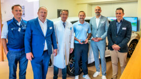 Fotos: Rainer Nitzsche – 1. v.l.: Patrick Mende (BMW BKK), Wolfgang Schulz (BMW AG), Prof. Dr. Marcus Schmitt-Sody (Ärztlicher Direktor und Chefarzt Orthopädie Medical Park Chiemsee), Sebastian Stemmler (Therapieleiter), Matthias Hortmann (BMW AG), Simon Leicht (Geschäftsführer Medical Park Chiemsee).