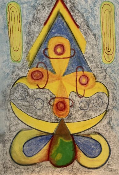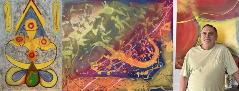 Es sind Malereien aus zwei Schaffensperioden: Bis 2023 entstanden Bilder mit Acryl auf Leinwand – eine Art Farbmalerei mit intuitiven Formen, mit denen der Betrachter in einen Dialog treten und Botschaften oder Symbole finden kann. „Irgendwann hat mir das nicht mehr gereicht“, so Barabas, der gespürt hat, dass er eine Veränderung brauchte. Diese zeigt sich in den Bildern, die in den letzten beiden Jahren entstanden sind, und die er Seelenbilder nennt. Mit Kreide auf Leinwand und Papier zeigen diese eine bedeutungsvolle Symbolik geometrischer Figuren, die auch in Runen oder Hieroglyphen ausgedrückt ist und sich in einer Bildsprache präsentiert, die es zu entschlüsseln gilt. Auch die nordische Mythologie spielt hier, wie auch in seiner Musik, eine Rolle. Barabas malt intuitiv, erzählt er im Gespräch mit der Heimatzeitung. Durch das Malen versuche er, höhere Sphären zu erreichen und in die Transzendenz zu gehen. Diese Intention habe er durch einen „Bewusstseinssprung“ gewonnen. Für den Betrachter wünscht er sich, dass er sich ebenfalls erheben lässt oder sich gehoben fühlt, wenn dieser seine Bilder anschaut.