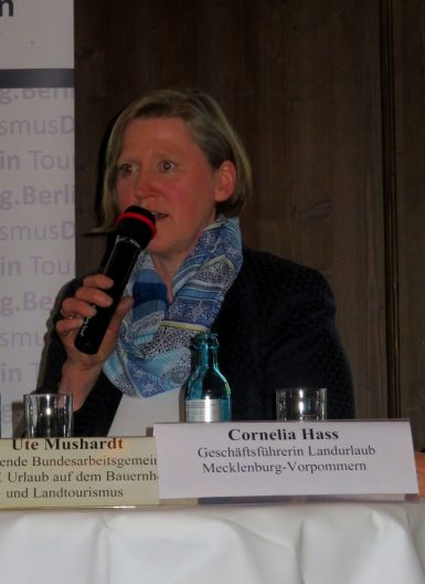 Anders strukturiert als Bayern ist Mecklenburg-Vorpommern, erklärte Frau Cornelia Hass, Geschäftsführerin vom dortigen Landurlaub-Verband. Unterkünfte auf dem Lande werden dort überwiegend durch Ferienwohnungen abgedeckt. Dazu gibt es natürlich auch Ferienbauernhöfe, auf denen man z. Bsp. rustikal im Heu oder sportlich auf dem Pferd seinen Urlaub verbringen kann. Eine besondere Attraktion sind Mitmachhöfe, wo man selbst mit anpacken kann. Hier kann man hautnah Landwirtschaft erleben, Kühe melken, mit der Bäuerin kochen, den Stall ausmisten oder auf dem Traktor der Feldarbeit mit beiwohnen.