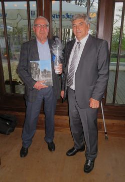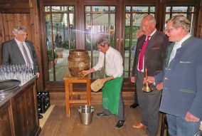 Herr Groenewold lud anschließend die Gäste zu einer zünftigen bayerischen Brotzeit ein. Dazu spendete er ein Holzfass Augustiner. Helmut Amberger, Vorsitzender vom Verein der Bayern in Berlin, hatte die Ehre, das Fass anzustechen.