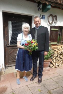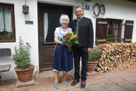 Ihren 85. Geburtstag feierte die Bestsellerautorin Roswitha Gruber auf ihrem Anwesen, dem ehemaligen Widhölzl-Bauernhof in Oberbichl in Reit im Winkl. Zu den zahlreichen Gratulanten gehörte auch Bürgermeister Matthias Schlechter.