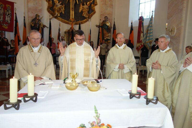 Es sei ihm eine große Ehre, in seiner Heimatgemeinde Reit im Winkl dieses Jubiläum feiern zu dürfen, sagte der Jubilar zu Beginn des Gottesdienstes. Und er freue sich besonders, dass dazu auch eine Reihe von Mitbrüdern gekommen seien, die ihn in seinen priesterlichen Stationen in Olching, im Pfarrverband Holzland und in Feldmoching begleitet hätten. “Bringen wir den Dank vor Gott und bitten ihn, dass er uns weiterhin mit seinem Erbarmen und seiner Gnade begleitet“, rief er aus.