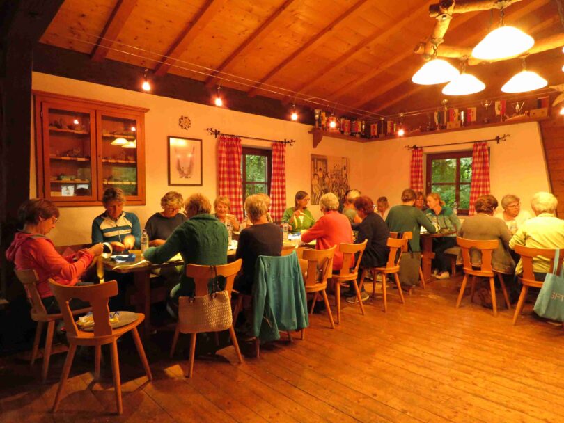 Viele fleißige Hände gab es, als im Alpenvereinsheim die Bänder angefertigt wurden, die den Weg des Kirchenzugs und des Festzugs beim Gaufest des Chiemgau-Alpenverbands am Sonntag, 30. Juli, in Reit im Winkl schmücken werden.