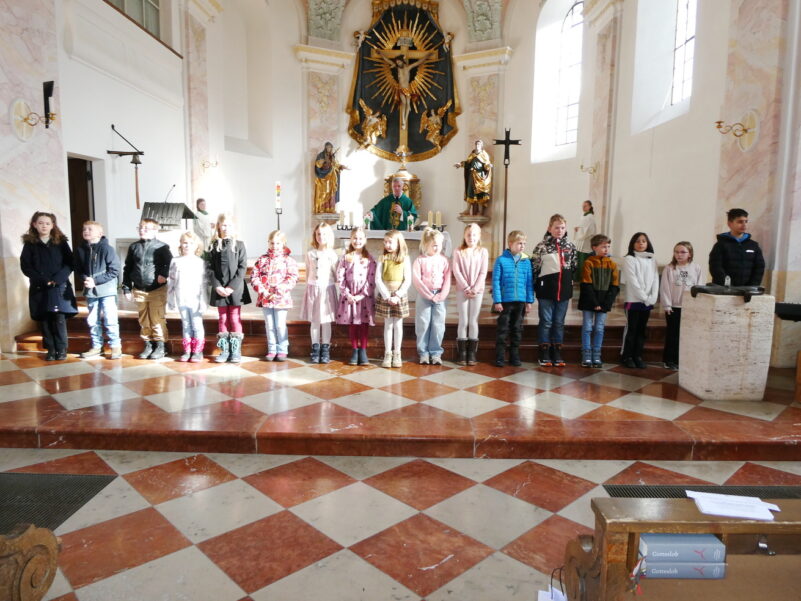 17 Kinder feiern am 10. Mai in Reit im Winkl ihre Erstkommunion. Beim Pfarrgottesdienst stellten sich jetzt vor: Sie nannten ihre Hobbys und erzählten, warum sie sich auf ihre Erstkommunion freuen.