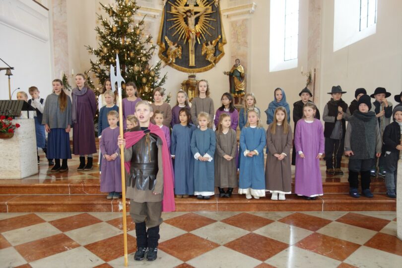„Da richtige Weg“, so hieß die Weihnachtsgeschichte, die Reit im Winkler Kinder am Heiligen Abend in der voll besetzten Pfarrkirche musikalisch erzählten. Beherzt, textsicher und mit frischen Gesängen traten sie bei ihrem Krippenspiel auf. „Wir lassen uns heute von Kindern sagen, was Gott will. Das Jesuskind will uns zusammenfügen zu einer Menschheitsfamilie“, sagte Monsignore Christoph Huber.