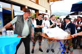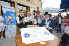 Die Musikkapelle Reit im Winkl spielte schneidig auf und die Reit im Winkler Alphornbläser spielten schöne Weisen. Unter der Moderation vom Maibaumwart Günter Dirnhofer handelten Miesenbacher-Vorstand Toni Hogger mit Unterstützung von Bürgermeister Justus Pfeifer und der Reit im Winkler Bürgermeister Matthias Schlechter den Übergabepreis aus, was schließlich mit einem für beide Seiten fairen Ergebnis endete. Beim anschließenden zünftigen Maibaumfest mit gewohnt hervorragender Bewirtung durch Maibaumwirt Willi Schwarz wurden die freundschaftlichen Verbindungen der beiden Orte noch nachhaltig unterstrichen.