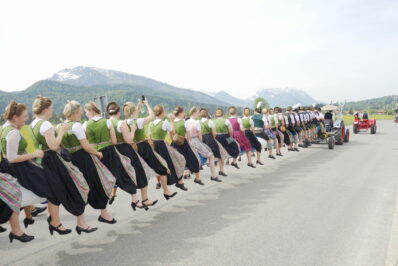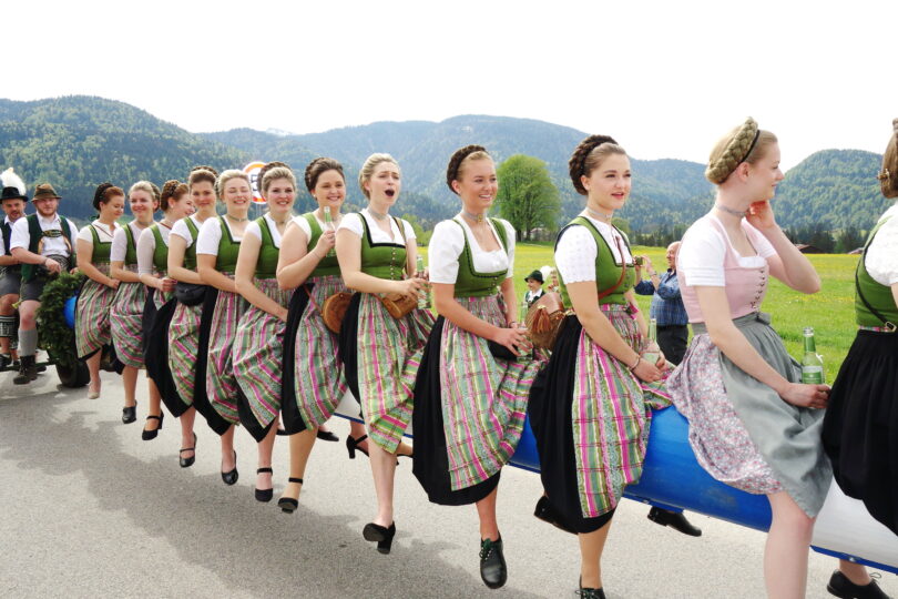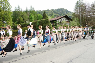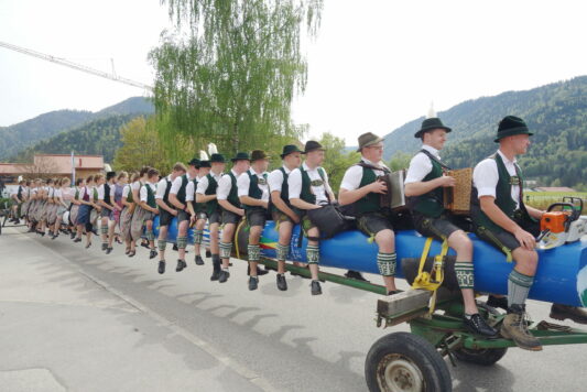Gebührend gefeiert wurde das Aufstellen des neuen Maibaums in Reit im Winkl. Mit einem herzlichen Beifall der vielen Besucher wurden die Maibaumdiebe vom Trachtenverein „D‘ Miesenbacher“ aus Ruhpolding mit dem 30 Meter langen Prachtstück empfangen.
