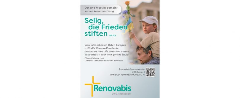 Beispielland für die Spendenaktion 2020 unter dem Leitwort “Selig, die Frieden stiften” ist die Ukraine. Zuletzt hat Renovabis die dortigen Projektpartner in der Corona-Krise mit Soforthilfen unterstützt. Seit dem Ausbruch der Pandemie verzeichnet Renovabis aus vielen seiner 29 Partnerländern im Osten Europas immer mehr Hilferufe. Bis zum 11. Mai sind bereits insgesamt mehr als 400.000 Euro zur Verfügung gestellt worden.