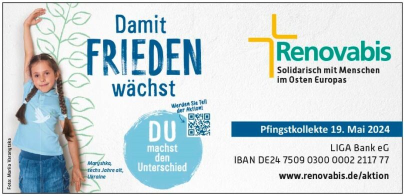 Die Friedenssehnsucht der Menschen steht im Mittelpunkt der Renovabis-Pfingstaktion 2024. „Damit Frieden wächst. DU machst den Unterschied“ lautet das Leitwort der diesjährigen Kampagne, die am 5. Mai mit einem feierlichen Gottesdienst im Sankt-Paulus-Dom in Münster offiziell eröffnet wird.