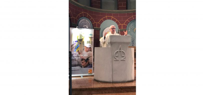 Auf Gäste aus der Ukraine oder anderen Renovabis-Partnerländer hatten die Teilnehmenden am Gottesdienst völlig verzichten müssen. So hatte zuletzt das Oberhaupt der Ukrainischen Griechisch-Katholischen Kirche, Großerzbischof Swjatoslaw Schewtschuk aus Kiew seine Reise abgesagt. Eine „Pfingstaktion“ mit Gottesdiensten, Begegnungen in Gesellschaft und Kirche mit Politikern und Repräsentanten des Öffentlichen Lebens in Berlin, München, Heidelberg und Freiburg wird also nicht stattfinden. Wohl aber werben nun während der kommenden zwei „Renovabis-Solidaritätswochen“ bis Pfingsten die katholischen Kirchengemeinden in ganz Deutschland mit dem Leitwort „Selig, die Frieden stiften ‑ Ost und West in gemeinsamer Verantwortung“: Es geht dabei um das Einander-Halt-Geben auch über die geschlossenen Grenzen hinweg und um praktische Zeichen der Solidarität in Form von Spenden für Menschen im Osten Europas, denen es zum Teil erheblich schlechter geht.