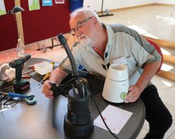 „Mit der Wiedereröffnung des Repair-Cafes ging ein lang gehegter Wunsch und lange geplantes Vorhaben des Seniorenbeirats in Erfüllung“, erzählte Philipp Ramming, „gerade die ältere Generation hat kein Verständnis dafür, etwas wegzuwerfen, bloß weil ein kleiner, eigentlich mit wenig Aufwand behebbarer Schaden die Funktion einschränkt. So landen jeden Tag viele verwertbare Gegenstände im Müll, die mit ein paar Handgriffen wieder funktionsfähig gemacht werden könnten – wenn der Eigentümer wüsste, wie das geht. Wir wollen das Wissen der Fachleute und die defekten Gegenstände zusammenbringen und versuchen unnötige Anschaffungen soweit wie möglich zu vermeiden“.