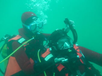 Taucher der Wasserwacht tauchen innerhalb der Nullzeit, das ist die Zeit in der man ohne Pausen einhalten zu müssen wieder zurück zur Oberfläche darf. Bei Überschreitung werden Haltezeiten, sogenannte „Deko Stopps“ nötig, man darf also nicht direkt wieder auftauchen, so ein Procedere.