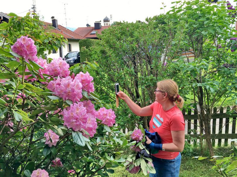 Eine besonders große und farbige Erscheinung haben die vor Pfingsten blühenden Rhododendren, die zur Pflanzengattung aus der Familie der Heidekrautgewächse gehören. Aus dem Griechischen übersetzt heißt der Name Rhododendron soviel wie „Rosenbaum“. Von der Gattung gibt es rund 1.000 verschiedene Arten. Unsere Aufnahmen entstanden in Prien-Prutdorf unweit der Pfarrkirche „Christkönig“.