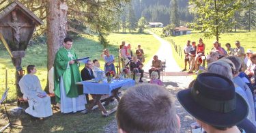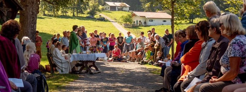 Jedes Jahr im September feiern die drei Pfarreien des Pfarrverbands Riedering am Moserboden eine Bergmesse. An so viele Gläubige, aus den drei Pfarreien Riedering, Söllhuben und Hirnsberg, wie in diesem jahr konnte man sich kaum erinnern. Ein schönes Zeichen, dass der Pfarrverband immer mehr zusammen wächst. Vor genau 30 Jahren lies Maria Daxlberger aus Riedering, kurz vor ihrem Tod, ein großes Wegkreuz aufstellen – und unter diesem Wegkreuz feierten Pfarrer Claus Kebinger und Gemeindereferent Tobias Gaiser mit den Gläubigen den Gottesdienst. Heuer übernahm die Bachecker Blech aus Hirnsberg unter der Leitung von Alois Schlemmer die musikalische Gestaltung. Auch nach dem Gottesdienst spielten die Musikerinnen und Musiker noch an der Hütte vom Daxlberger Sepp einige Stunden auf. Auch wenn die vorbereiteten Biertischgarnituren für alle Besucher bei weitem nicht reichten, fand doch jeder, der wollte irgendwo ein Eck zum zammsitzen – und es blieben wenigstens keine Würschtel und kein Kuchen übrig. Ein wunderschöner Spätsommertag, an dem alle Sinne in Gottes wunderbarer Schöpfung angesprochen wurden.
