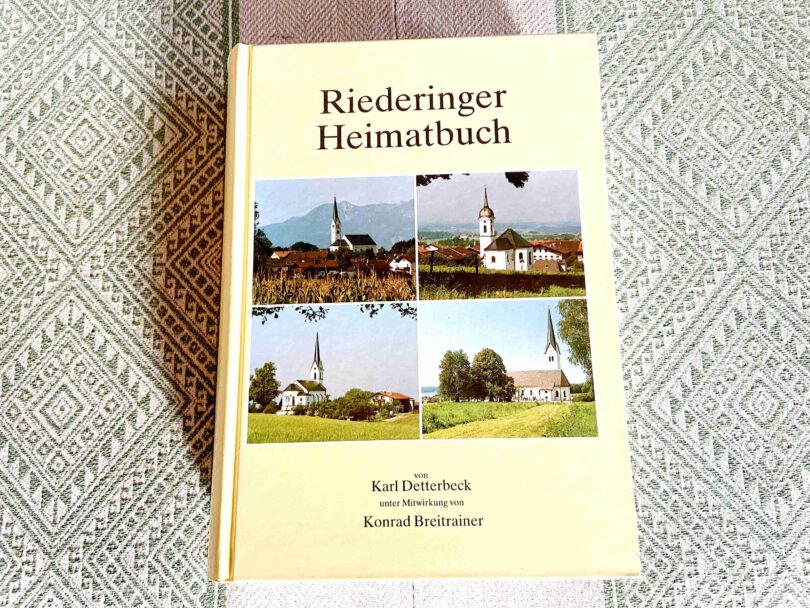 Fotos/Repros: Hötzelsperger – Titel und Bilder aus der Chronik „Riederinger Heimatbuch“ aus dem Jahr 1988 von Karl Detterbeck und Konrad Breitrainer.