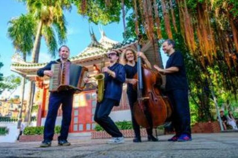 Das international gefeierte Ensemble Quadro Nuevo feiert sein 30-jähriges Bühnenjubiläum. Gemeinsam mit Vibraphonist und Drummer Tim Collins nehmen sie das Publikum mit auf eine musikalische Weltreise.