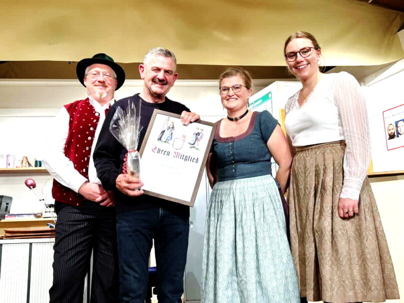 Nach der erfolgreichen Theaterpremiere wurde Andreas Aßbichler von den drei Vorständen Johanna Lindner, Gerhard Fiedler und Bernadette Breit zum Ehrenmitglied ernannt. Das Publikum und die gesamte Theatergruppe würdigten ihn mit langem Applaus. Seit 53 Jahren steht Andi als Theaterspieler auf der Bühne und hat unzählige Rollen geprägt. Auch im aktuellen Stück „Dümmer als die Polizei erlaubt“ brillierte er als Polizeipräsident.