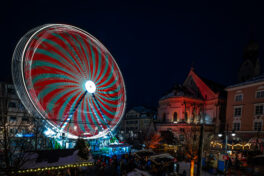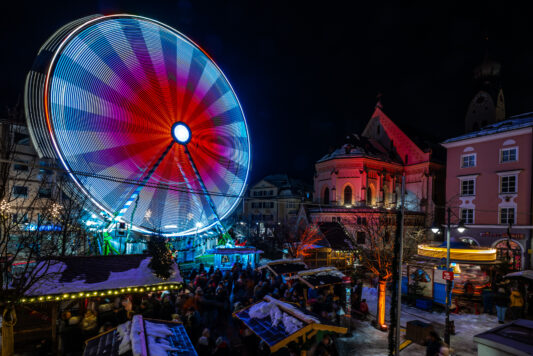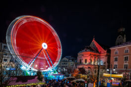 Farbenfroh präsentiert sich auch heuer der Rosenheimer Christkindlmarkt des Wirtschaftlichen Verbandes inmitten der Inn-Stadt. Herausragend dabei ist das Riesenrad, das nicht nur zur Mitfahrt, sondern auch zum Hinschauen und Staunen einlädt.