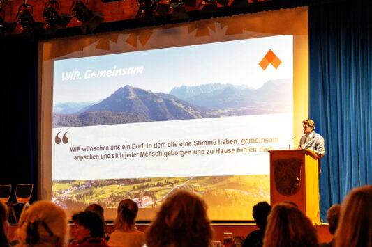 Die Schwerpunkte des zukünftigen Handelns wurden anhand dreier dorfprägender Punkte erläutert. Anhand der Entwicklung der Generationenbrücke am Standort des ehemaligen Krankenhauses an der Tiroler Straße und der unklaren Situation am ehemaligen Hallenbadareal wurde auf die Frage übergeleitet, wie das Potenzial von Reit im Winkl wieder voll gehoben werden kann. Vor allem das Thema Generationenbrücke bewegte die Anwesenden. Insbesondere die damit verbunden Neuverschuldung und die unübersichtliche Verkehrssituation verunsichern einige Bürgerinnen und Bürger.