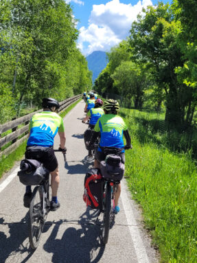 Die geführte Radtour von Rosenheim nach Lazise am Gardasee ist mittlerweile ein fester Bestandteil im Terminkalender der Städtepartnerschaft. Bereits zum 15. Mal führten Reinmund und Josefine Hobmaier eine begeisterte, 12-köpfige Radlergruppe auf der rund 400km langen Strecke über den Brennerpass. Und manche Teilnehmer sind bereits das fünfte oder sechste Mal mit dabei. Pedaliert wird stets mit eigener Muskelkraft in den Beinen, ohne elektronische Unterstützung. Und auch das Gepäck ist immer auf dem Rad mit dabei. Somit ist eine gute Grundkondition für die Überquerung des Brennerpasses auf jeden Fall erforderlich.