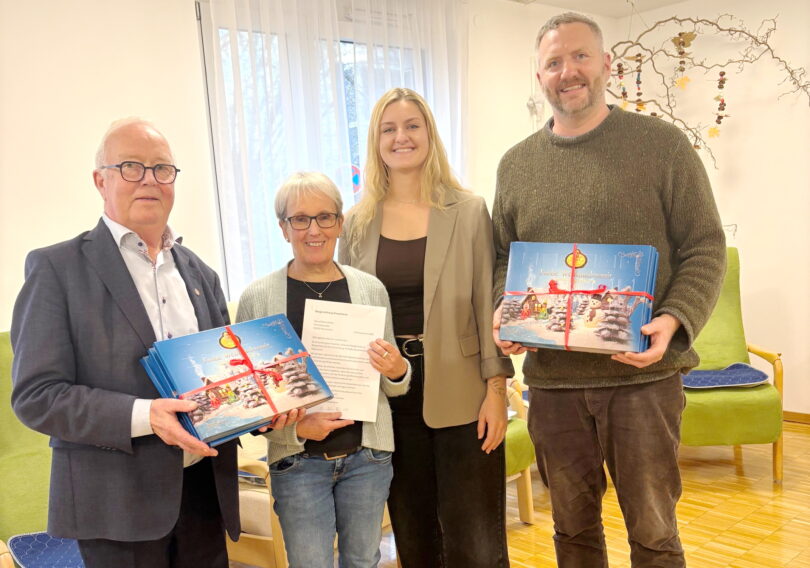 Damit kann das Pflegepersonal mit den Heimbewohnern einfühlsame, vorweihnachtliche Momente im Alltag gestalten. Sicherlich erinnert sich dann der eine oder andere an die Kinderzeit, als der Adventskalender mit Schokolade gefüllt eine wesentlich höhere Bedeutung hatte als in der heutigen Zeit. Persönlich überreicht wurden die ersten 12 Kalender an die Leitung der Tagepflege der Rothenfußerstiftung an der Ellmaierstaße.