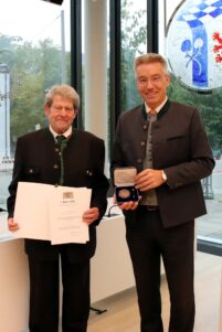 Seit 40 Jahren ist Bernhard Hainz aus Gstadt am Chiemsee Mitglied des Gemeinderats. Von 1990 bis 1996 war er 3. Bürgermeister in seiner Heimatgemeinde, bevor er 2008 zum ersten Bürgermeister gewählt wurde. Sein besonderes Anliegen ist das gute Miteinander in der Gemeinde, welches er aktiv fördert. Auch konnte dank seines großen Engagements nicht nur gemeindeübergreifend ein Kommunalunternehmen gegründet, sondern auch die Chiemsee-Halle im Bereich der Gemeinde Breitbrunn realisiert werden. Gstadt trug dabei ein Drittel der Kosten der Chiemsee‑Halle. Auch dankte Lederer den Ehepartnerinnen und Ehepartnern. Ein erfolgreiches Engagement in der kommunalen Politik über Jahrzehnte sei nur dank der Unterstützung aus dem privaten Umfeld zu stemmen. Die Kommunale Verdienstmedaille wird seit 1966 vom Bayerischen Staatsministerium des Innern verliehen.