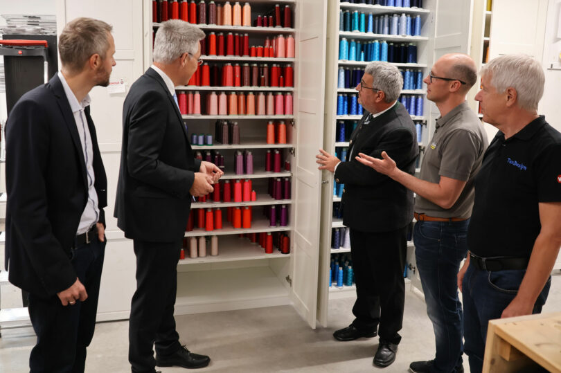 Im Anschluss an die Präsentation führte der Firmenchef die Besucher durch die neue Produktionsstätte, in der Stickmaschinen, Garne und Textilien in allen Farben das Bild prägen. Die Magic Stick Stickerei veredelt Textilien wie Shirts, Jacken oder Caps durch Stickerei, Druck und Beflockung – sowohl für Unternehmen und Vereine als auch für Privatkunden.