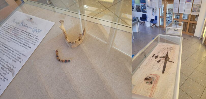 Gesprächsabend mit dem Archäologen Prof. Siegmar von Schnurbein – Insgesamt elf Reihengräber aus dem 7. Jahrhundert wurden in den 1950er und 1960er Jahren in Eggstätt entdeckt. Neben einem Unterkieferknochen fanden die Archäologen viele „Werkzeuge“ der Bajuwaren wie einen 62 Zentimeter langen Sax oder eine Tonperlenkette, die zur Bestattung einer Frau als Grabbeigabe fungierte.