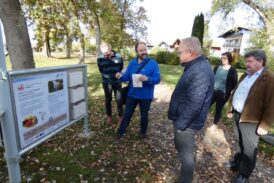 Neue Attraktionen hält der vor 15 Jahren eröffnete „Archäologische Rundweg“ der Gemeinde bereit, der über 23 beziehungsweise 27 Kilometer (je nach Route) durch die drei Gemeindeteile Seebruck, Truchtlaching und Seeon verläuft. An acht der elf geschichtsträchtigen Stationen sind nun zusätzlich zu den bestehenden Infotafeln für Erwachsene einladende Schautafeln für Kinder aufgestellt worden. Sie zeichnen sich aus durch kurze, leicht verständliche Texte, bunte Bilder und thematisch passende Repliken von historischen Waffen, Werkzeugen und anderen Gebrauchsgegenständen. „Wir hoffen, dass der Rundweg jetzt für Familien mit Kindern noch interessanter ist. Für jeden der den Weg noch nie geradelt ist, ist das ein Anreiz es zu probieren und für alle anderen die Gelegenheit, zum Wiederholungsradler zu werden. Das neue Konzept wird die Geschichte für alle leicht verständlich und mit allen Sinnen erlebbar machen und der Spaß kommt dabei nicht zu kurz“, so der gemeindliche Römerbeauftragte und Museumleiter Matthias Ziereis bei der offiziellen Präsentation am römisch-norischen Gräberfeld in Seebruck, der Station 2 des archäologischen Rundweges. Anwesend waren auch Bürgermeister Martin Bartlweber, die Projektbeauftragte der Koordinationsstelle Römerregion Chiemsee und provinzialrömische Archäologin Andrea Krammer, der 1. Vorsitzende der Lokalen Aktionsgruppe (LAG) Chiemgauer-Seenplatte Sepp Reithmeier und der Kunstschmied Robert Mayer. Die Maßnahme läuft unter dem Erfolgsprojekt „Römerregion Chiemsee“ und wird kofinanziert über die LAG Chiemgauer Seenplatte mit Mitteln aus dem EU-Förderprogramm Leader.