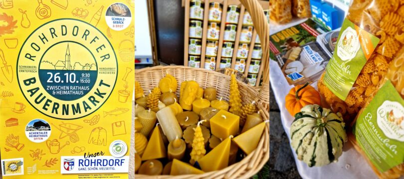 Der Markt in Rott am Inn wird am Freitag, 24. Oktober von 11.30 Uhr bis 16.30 Uhr auf dem Marktplatz angeboten. In Rohrdorf ist Bauernherbstmarkt am Sonntag, 26. Oktober von 9.30 Uhr bis 15 Uhr auf dem Dorfplatz beim Hotel zur Post mit Gasthof & Metzgerei sowie zwischen Rathaus und Heimathaus.