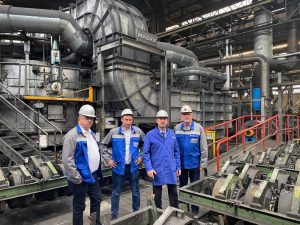 Bayerns Wirtschaftsminister Hubert Aiwanger besuchte die Mitarbeiter im Rohrwerk Maxhütte. Rechts: Betriebsratsvorsitzender Karl-Heinz König. Foto: StMWi