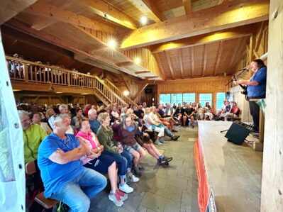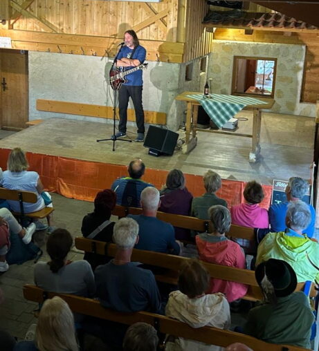 Der Schauspieler, Kabarettist, Liedermacher, Sänger und Münchner Kommunalpolitiker Roland Hefter gab ein Gastspiel in der Käseralm auf dem Samerberg. Im vollbesetzten Stadel erheiterte er mit Gitarrenbegleitung mit einer sehr persönlichen Zeitreise von Klein bis ins hohe Alter.