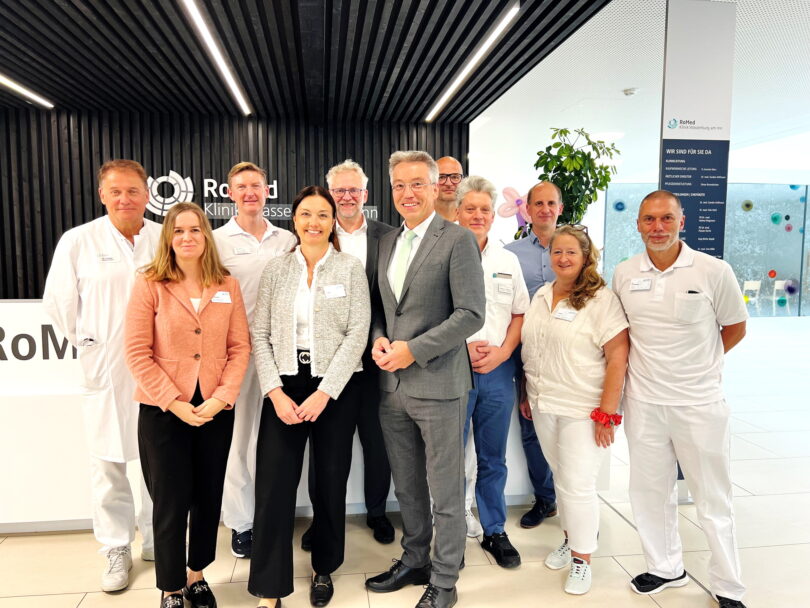Vor Ort begrüßte Kaufmännische Leiterin Annette Merz gemeinsam mit leitenden Führungskräften die Gäste und hob hervor, dass sich seit dem Standortwechsel der Klinik eine sehr gute Zusammenarbeit mit dem kbo-Inn-Salzach-Klinikum entwickelt hat, etwa in Technik, Speisenversorgung oder im medizinischen Sektor, wie der Radiologie. Dabei betonte sie: „Diese Kooperation ist ein Gewinn für beide Seiten. Durch die Bündelung unserer Kompetenzen profitieren letztlich nicht nur wir, sondern vor allem unsere Patientinnen und Patienten.“