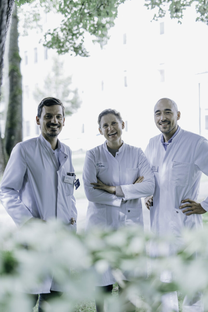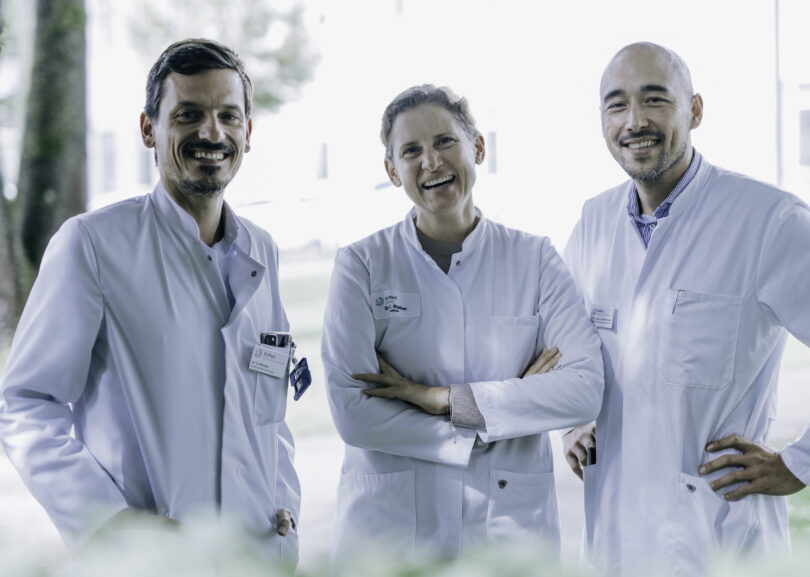 Bericht und Foto: RoMed Kliniken – Bei der Akutversorgung eines Schlaganfalls muss es schnell gehen. Hier arbeiten die RoMed-Experten Hand in Hand zusammen. (v.l.): Chefarzt Dr. Georgios Ntoulias – Neurochirurgische Klinik, Chefärztin Dr. Charlotte Rüther – Neuroradiologische Klinik und Chefarzt Prof. Dr. Joji Kuramatsu – Neurologische Klinik
