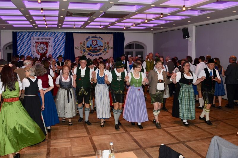Die stellvertretenden Vorstände Stefan Ertl und Christian Hübl begrüßten alle Teilnehmer, besonders auch die beiden anwesenden Stadträte Reinhard Tomm und Georg Soyer sowie den Ehrenvorstand der Alt Rosenheimer, Herbert Dasch. Unter der Leitung der beiden Tanzmeister Hans Löw und Uli Berchtold vom Trachtenverein Alt Rosenheim e. V. begann der Abend mit dem traditionellen Auftanz, dem ein buntes Programm von einfachen und auch anspruchsvolleren Figurentänzen zur Musik der Oberlauser Tanzlmusi folgte.