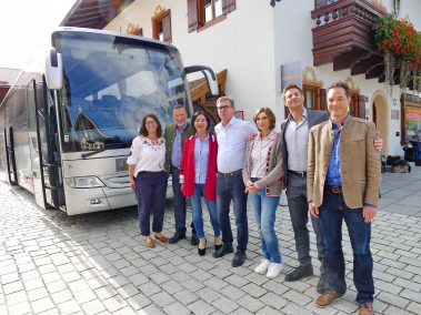 Schon mehrmals gab es auf dem Samerberg eine „Rosenheim-Cops“-Leiche. Nach den bisherigen Opfern beim Gleitschirmfliegen, am Naturbad oder bei der Aussichtskapelle kam es beim neuerlichen Dreh zu einem „Tod im Reisebus“. Die dreitägigen Aufnahmen für einen Film in der beliebten Reihe „Rosenheim Cops“ waren von schönem Spätsommer-Wetter und dem malerischen Ambiente vom Törwanger Dorfplatz begünstigt. Bürgermeister Georg Huber und seine Leiterin der Gäste-Information mit dem krimi-verdächtigen Namen Monika Schimanski hießen die Schauspieler und die gesamte Crew herzlich willkommen. Bus-Unternehmer Bernd Rieder und Gasthof-Post-Wirt Wolfgang Pallauf erhielten zum Dank für ihre Dreh-Unterstützung Erinnerungsfotos mit Schauspielerin Marisa Burger alias „Frau Stockl“ vom Rosenheim-Cops-Sekretariat. Der Termin für die Ausstrahlung des auf dem Samerberg aufgenommenen Films im Zweiten Deutschen Fernsehen steht derzeit noch nicht fest.