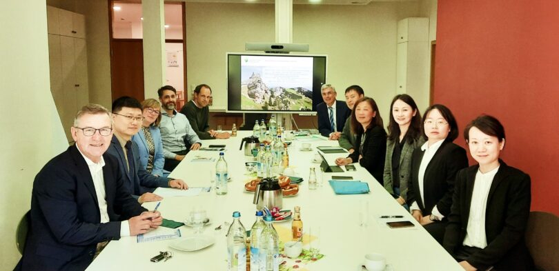 Bericht und Foto: LRA Rosenheim – Die Chinesische Besuchergruppe aus Shanghai informierte sich im Rosenheimer Gesundheitsamt über die Covid-Pandemie. Dr. Wolfgang Hierl (hinten rechts) empfing die Delegation und erläuterte den Pandemieverlauf.
