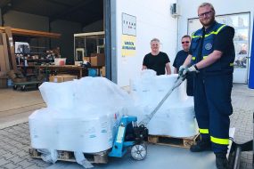 Im Anschluss sind die Masken bereit für die Fahrt in die Vergabestellen der Stadt und des Landkreises Rosenheim. Von dort werden sie dann weiterverteilt an Kliniken, Alten- und Pflegeheime, Ärzte, Rettungsdienste und Pflegedienste. Dass der Ablauf so reibungslos funktioniert, liegt vor allem an Kreisbrandmeister Stefan Pliegl, bei dem alle Fäden zusammenlaufen.