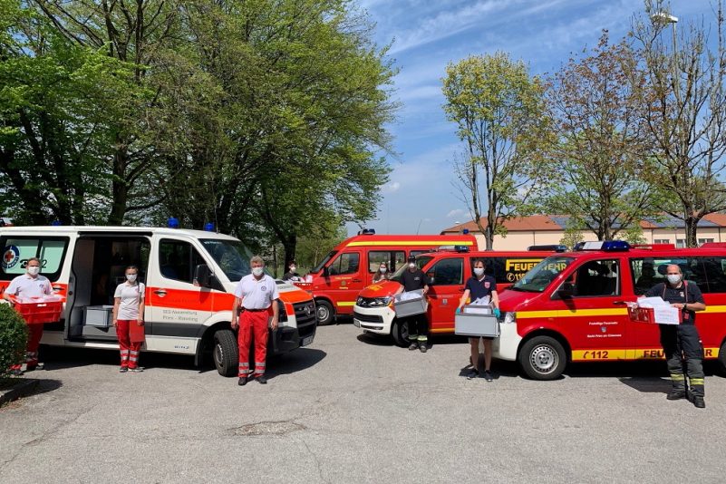 Einsatzkräfte von Feuerwehren und Wasserwacht brachten die Bündel zu den vielen Freiwilligen nach Hause. Die haben dann zwei bis drei Tage Zeit die 50 Masken zu nähen, bevor sie wieder abgeholt werden. Im Anschluss werden die fertigen Masken, auf Empfehlung des Staatlichen Gesundheitsamtes Rosenheim, drei Tage in einer Turnhalle zwischengelagert. Das ist eine zusätzliche Sicherheitsmaßnahme, denn länger können Coronaviren nicht auf Oberflächen überleben.