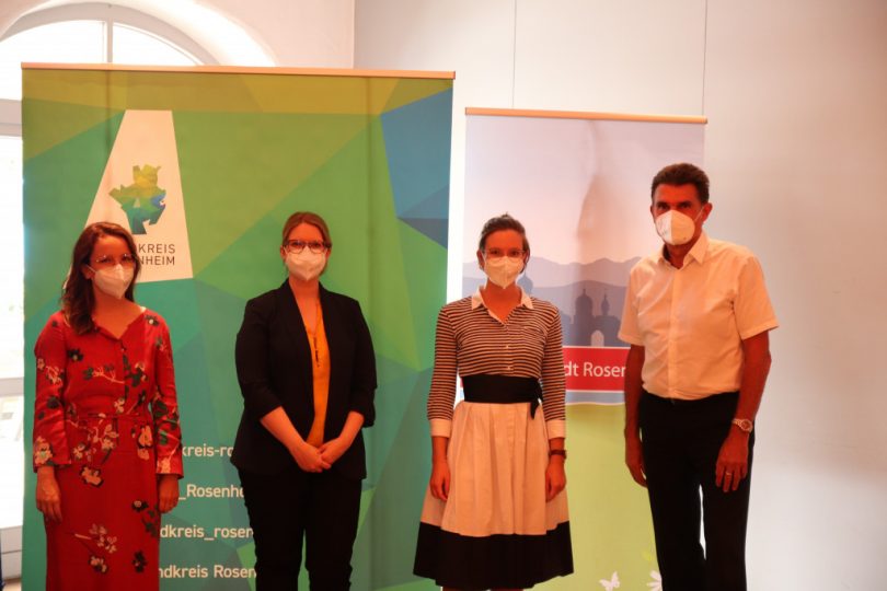 Bericht und Foto: Stadt Rosenheim – Von links nach rechts: Sozialplanerin Katharina Zeh von der Stadt Rosenheim, Bildungskoordinatorin Katrin Röber und Regierungsrätin Franziska Mandl vom Landratsamt Rosenheim und Stadtdirektor Michael Keneder von der Stadt Rosenheim.