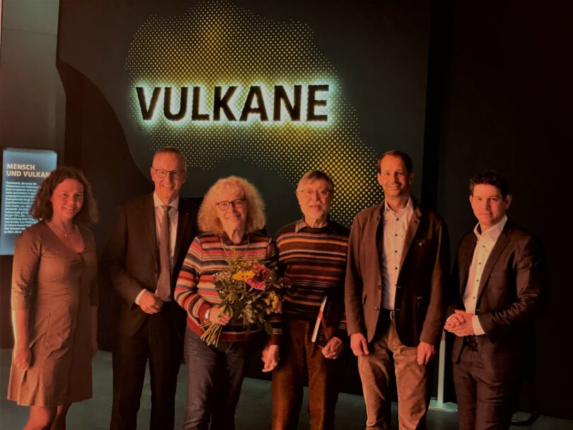„Wir machen regelmäßig Urlaub in einem Hotel in Schliersee und besuchen die Ausstellungen regelmäßig. Denn wir sind totale Fans vom Lokschuppen“, berichtete Rainer Clausen. „Wir finden die Ausstellungen immer sehr anspruchsvoll.“ Für so viel Treue und glühende Leidenschaft für die Vulkane gab es nicht nur ein herzliches Dankeschön vom Geschäftsführer der Veranstaltungs + Kongress GmbH, Florian Englert und der Leiterin des Ausstellungszentrums Lokschuppen Dr. Jennifer Morscheiser. Oberbürgermeister Andreas März überreichte das Begleitbuch zur Ausstellung, Vorstandsmitglied Harald Kraus vom Hauptsponsor, der Sparkasse Rosenheim-Bad Aibling schenkte den Besuchern einen Blumenstrauß. Mit dem bisherigen Verlauf der Ausstellung sind die Veranstalter sehr zufrieden. „Unser Ziel sind 170.000 Besucher“, so vkr-Geschäftsführer Florian Englert. „Wir sind zuversichtlich, dass wir die auch erreichen werden.“ Die Ausstellung VULKANE läuft noch bis zum 10. Dezember 2023.