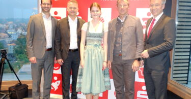 Foto: Hötzelsperger – von links: OB Andreas März, Vorstands-Vorsitzender Karl Göpfert von der Sparkasse Rosenheim-Bad Aibling, Ali Höllbauer, Lorenz Zunhammer, Kreishandwerksmeister Rudolf Schiller, Landrat Otto Lederer.