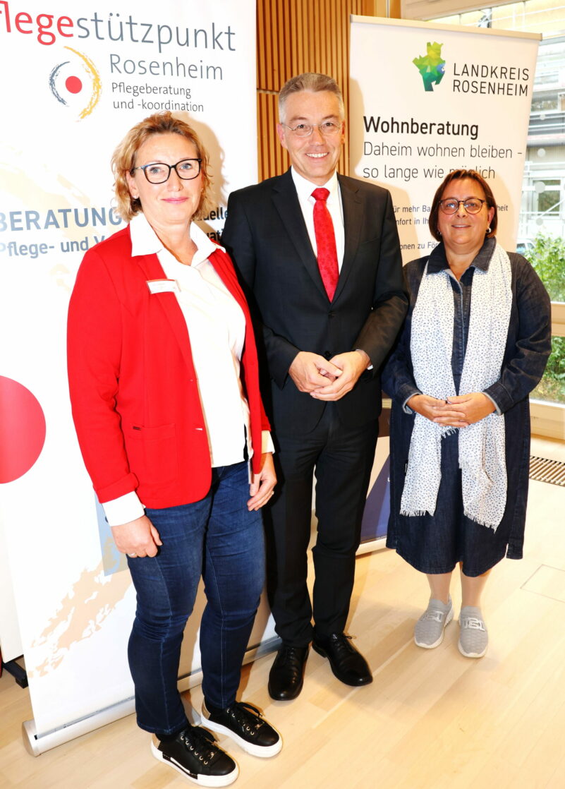 Bericht und Foto: LRA Rosenheim – Staffelübergabe für die Wohnberatung des Landkreises Rosenheim (v.l.n.r.): Pflegestützpunkt- Leiterin Nicole Hübel, Landrat Otto Lederer und die scheidende Wohnberatungs-Leiterin Brigitte Neumaier.