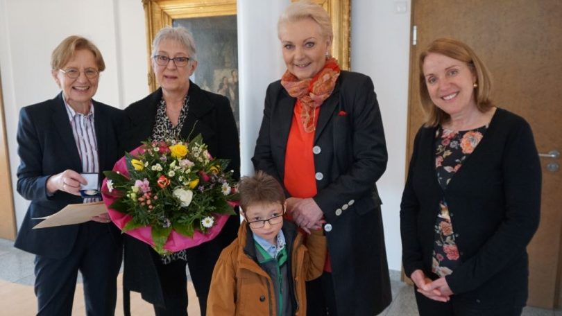 Bericht und Foto: Stadt Rosenheim – V.l.n.r.: Maria Els, Regierungspräsidentin; Angelika Miebach; Matthias; Gabriele Bauer, Oberbürgermeisterin; Ulrike May, Jugendamt Stadt Rosenheim