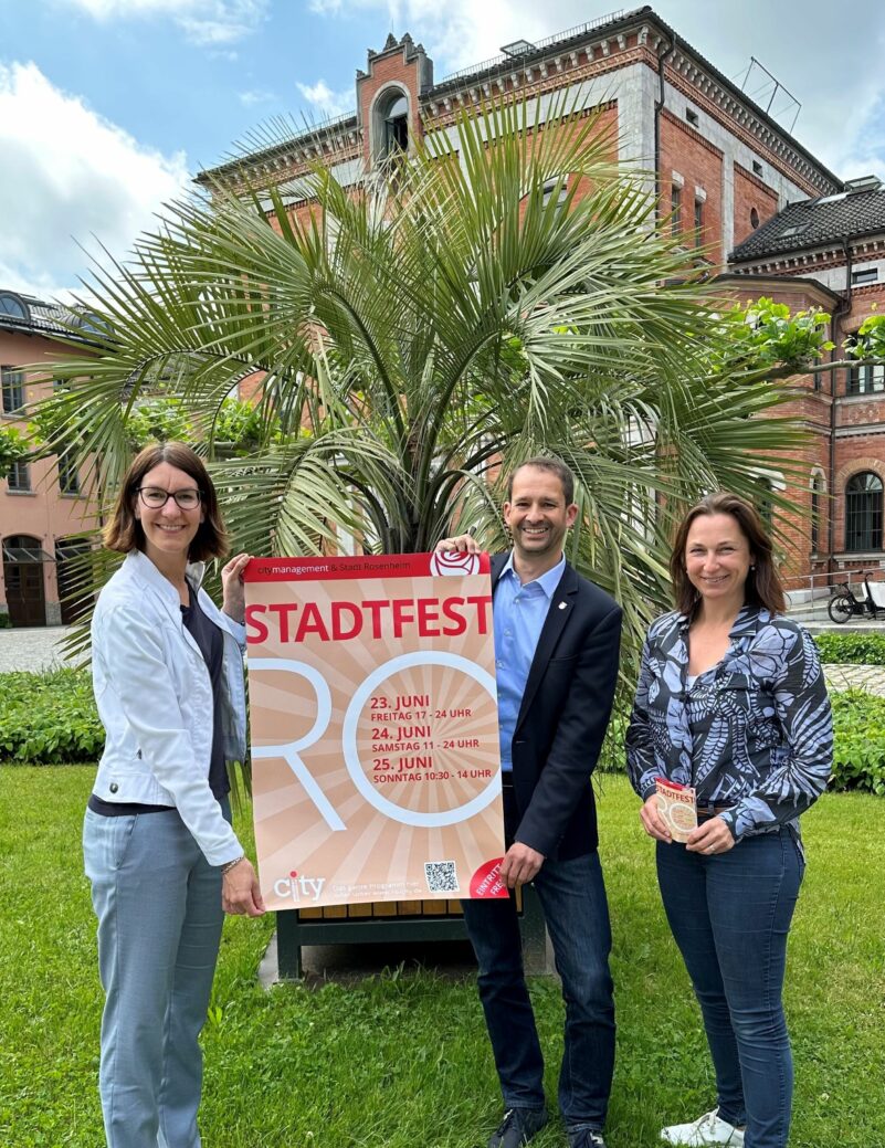 Endlich ist es wieder so weit, vom 23.-25. Juni laden das City-Management und die Stadt Rosenheim wieder zum Stadtfest ein. Sabrina Obermoser, Geschäftsführerin des City-Managements, überreicht Oberbürgermeister Andreas März und Judith Gebhart vom Stadtmarketing offiziell das Programmheft.