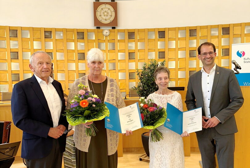 Anita Eggart vom Bürgerhaus E-Werk in der Endorfer Au und Waltraud Gelner vom Bürgerhaus Miteinander in der Lessingstraße sind die neuen Trägerinnen des Sozialpreises. Der mit jeweils 1.000 Euro dotierte Preis wurde von der „Kultur- und Soziaalstiftung des Oberbürgermeisters der Stadt Rosenheim Dr. Michael Stöcker“ mittlerweile zum dritten Mal vergeben.