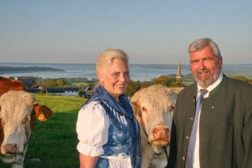 Fotos: Hötzelsperger – RegRo-Vorsitzender Sebastian Friesinger und Bauernherbst-Schirmherrin Annemarie Biechl beim Chiemseeblick in Hittenkirchen.