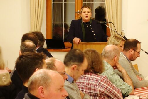 Vor allem junge Bäuerinnen und Bauern aus dem südwestlichen Gebiet des Landkreises Rosenheim von Bernau bis Halfing füllten einen Abend lang den Saal im Vereinshaus von Prien-Atzing, wozu der Bayerische Bauernverband (BBV) Rosenheim mit dem Ortsverband Wildenwart eingeladen hatte. Die Besucher, die derzeit zum Teil einen Marathon aufgrund von Zusammenkünften zu den Themen Milch, Jagd und Landwirtschaft zu bewältigen haben, ließen sich trotz brennender Probleme ausführlich und in Ruhe aus Erster Hand informieren und diskutierten in aller Sachlichkeit.
